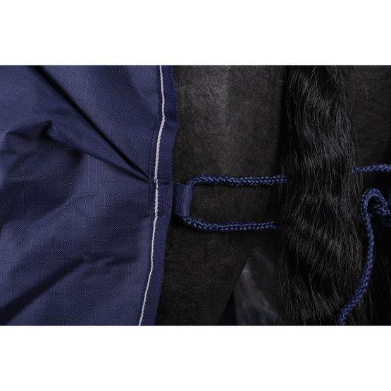 SchnittDer hohe Schulteransatz, der weit ausgeschnittene Brustbereich und die Gehfalte im Hinterbereich sorgen für großartige Bewegungsfreiheit. Zudem gibt es keine Reibepunkte am empfindlichen Widerrist. Diese Decke wurde ohne Rückennaht gefertigt. Das sorgt für noch besseren Sitz.BefestigungDie Führanlagendecke oder auch Führmasch