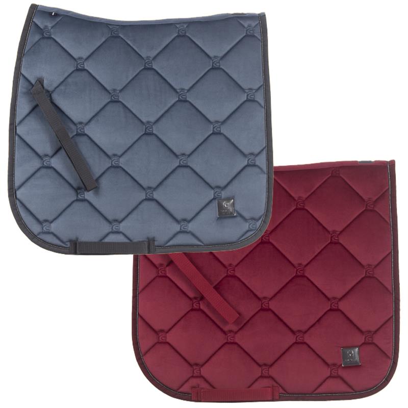 Die Dressurschabracke CAVALJOLENE aus der Herbst/Winter 2023 Kollektion von Cavallo ist ein wahres Schmuckstück für jeden Reiter! Sie ist aus edlem Samt gefertigt und besticht durch ihre hochwertige Verarbeitung und vielseitige Einsatzmöglichkeiten. Die aufwendige Allover Rautensteppung verleiht der Schabracke nicht nur eine ansprechende Optik, sondern trägt auch das integrierte Cavallo Logo, das für eine exklusive Note sorgt. Ein kleines, exklusives Cavallo Label rundet das Design gekonnt ab. Die schwarz-silberne Kordel entlang des Randes verleiht der Schabracke eine elegante und edle Ausstrahlung, die sie zum echten Hingucker macht. Das Mesh-Futter der Schabracke ist besonders hautfreundlich und transportiert Feuchtigkeit schnell ab, sodass dein Pferd trocken und komfortabel bleibt. Die Schabracke bietet einen angenehmen Sitz auf dem Pferderücken, dank der formbeständigen Wattierung, die dafür sorgt, dass sie stets perfekt auf dem Pferderücken liegt. Die oberen und unteren Gurtstrupfen lassen sich mit Klettverschlüssen sicher fixieren, sodass die Schabracke während des Reitens nicht verrutscht und einen optimalen Sitz gewährleistet.