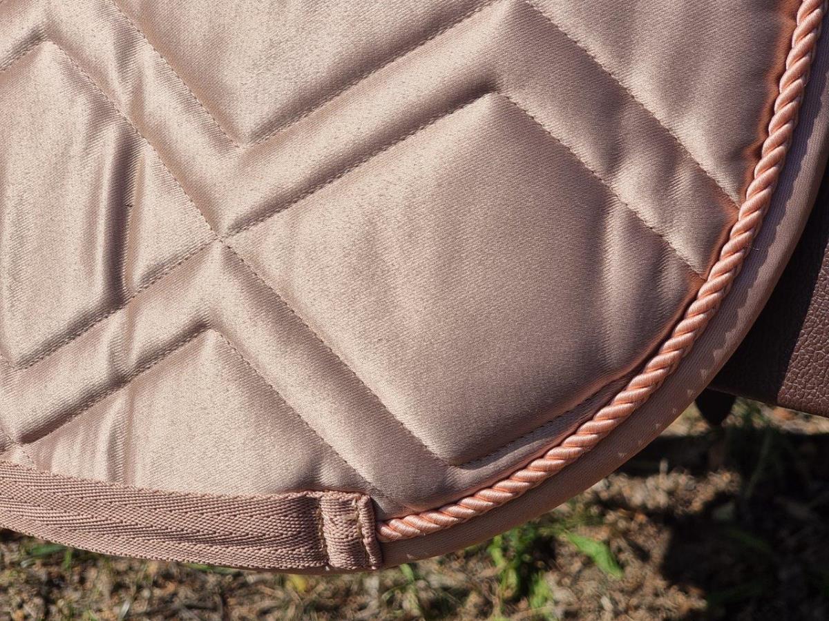 Diese Schabracke überzeugt mit einer eleganten Rautensteppung und durchdachten Details, die sowohl Komfort als auch Funktionalität garantieren. Der schimmernde, schmutzabweisende Oberstoff sorgt für ein gepflegtes Erscheinungsbild, während das atmungsaktive und feuchtigkeitsaufnehmende Innenmaterial ein angenehmes Klima unter dem Sattel erhält.