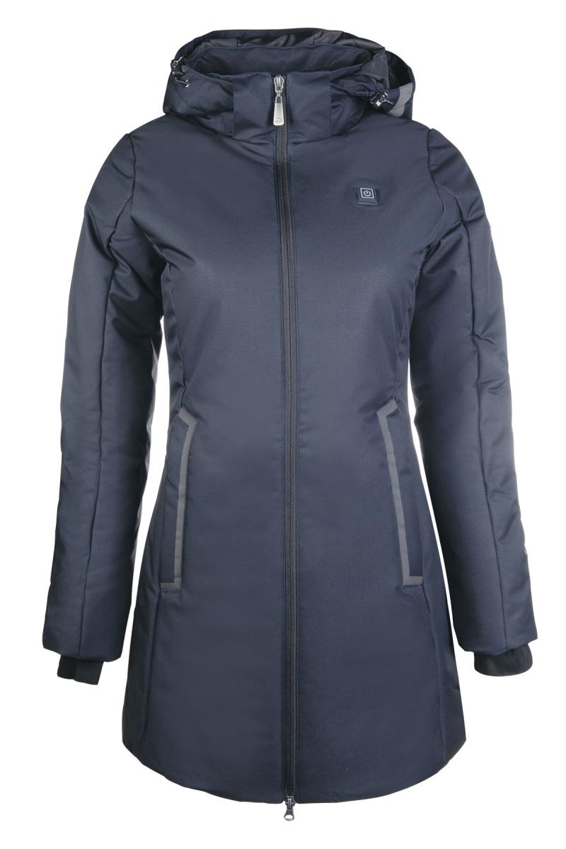 Der HKM Heizmantel Elegant Style kombiniert edles Design mit moderner Heiztechnologie. Dank integrierter Heizfunktion, die sich außen am Mantel stufenweise regulieren lässt, genießt du wohltuende Wärme vom oberen Rücken bis zur Taille – ideal für Stall, Training oder Winterausritte. Die schmale Passform, das wasserabweisende Material und durchdachte Reitdetails machen den Mantel zu einem zuverlässigen Begleiter an kalten Tagen.