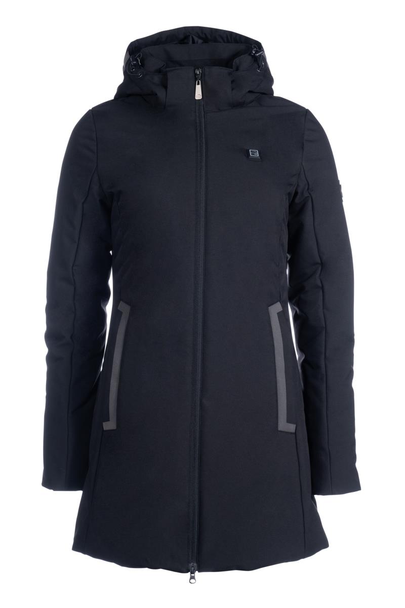 Der HKM Heizmantel Elegant Style kombiniert edles Design mit moderner Heiztechnologie. Dank integrierter Heizfunktion, die sich außen am Mantel stufenweise regulieren lässt, genießt du wohltuende Wärme vom oberen Rücken bis zur Taille – ideal für Stall, Training oder Winterausritte. Die schmale Passform, das wasserabweisende Material und durchdachte Reitdetails machen den Mantel zu einem zuverlässigen Begleiter an kalten Tagen.