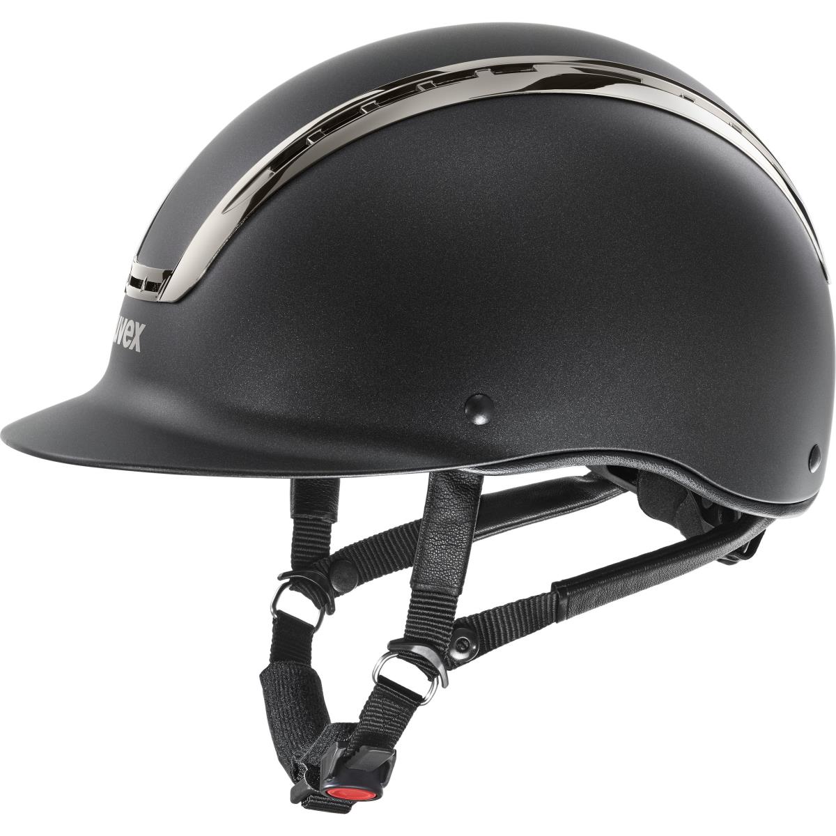 Clean, sportlich und extravagant präsentiert sich der uvex suxxeed chrome. Der auffällige Designmix aus matt lackierter Helmschale und markant glänzendem Chromrahmen kreiert einen zeitlosen Look und lässt den Reithelm-Klassiker in einem neuen Licht erstrahlen. Der robuste Hartschalenhelm verfügt über ein effektives Belüftungssystem und lässt sich mit dem bewährten 3D IAS System bequem in Höhe und Weite an den Kopf anpassen. Die speziell für Reiter entwickelte, atmungsaktive Innenausstattung garantiert einen besonders hohen Tragekomfort und lässt sich zum Reinigen herausnehmen.